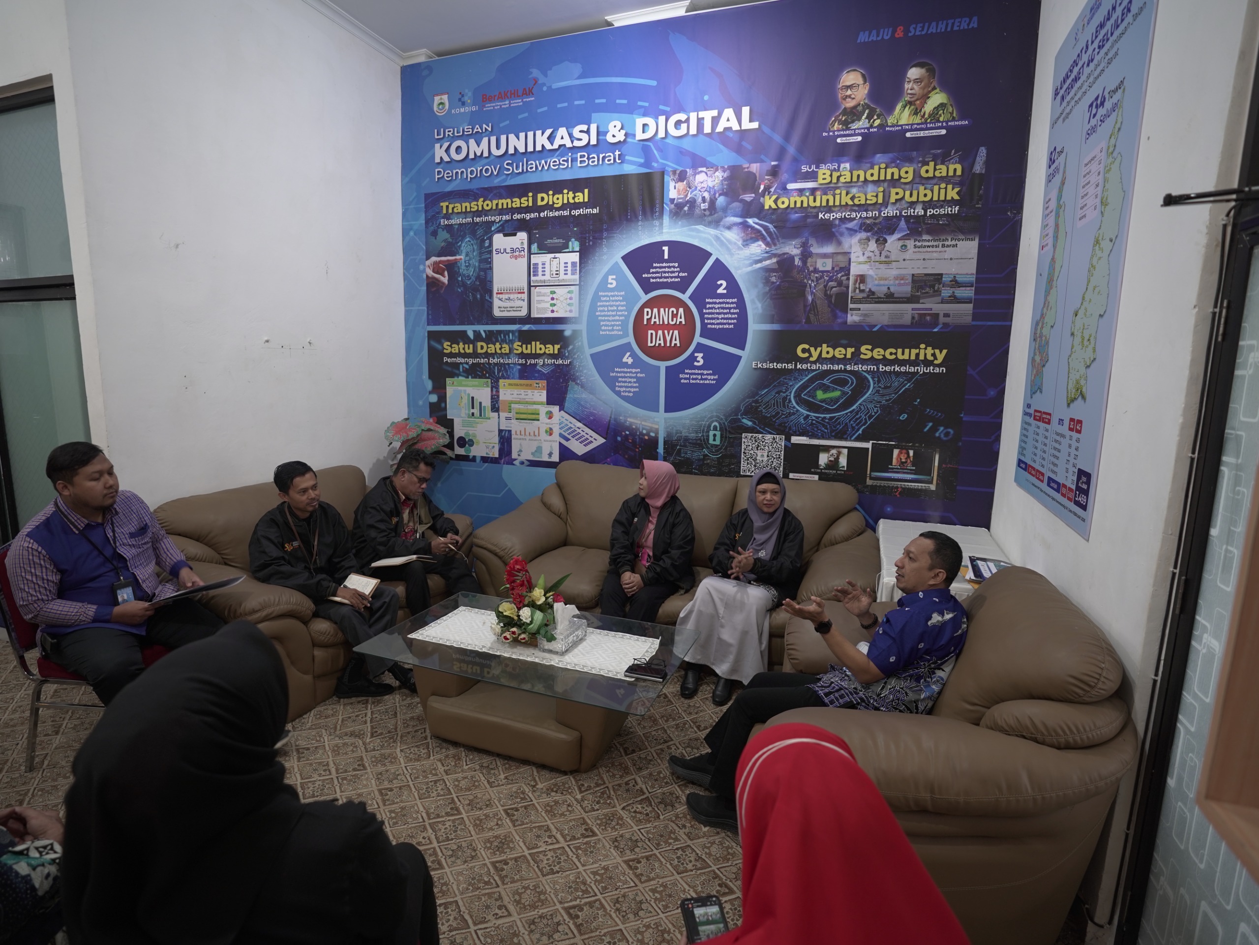 Pertemuan berlangsung di Ruang Rapat Dinas KominfoSS Sulbar. Dalam kesempatan itu, Muhammad Ridwan Djafar didampingi Sekretaris Dinas KominfoSS Sulbar Riny Hadiwijaya, Kepala Bidang KPM Dian Afrianty, serta Kepala Bidang Statistik Abdul Azis.