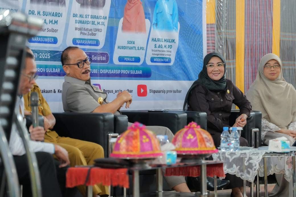 MAMUJU, Sulbarpost.com – Wakil Ketua DPRD Provinsi Sulawesi Barat (Sulbar), St. Suraidah Suhardi, hadir sebagai narasumber dalam acara Bedah Buku berjudul “SDK Mendayung dari Hulu” Maestro Politik Bertangan Dingin dari Sulawesi Barat, yang diselenggarakan oleh Dinas Perpustakaan dan Kearsipan Daerah (DPKD) Sulbar, Senin, 30 Juni 2025.